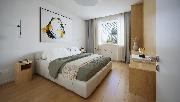 Byt B4.4 o dispozici 2+kk nabízí prostorný obývací pokoj s kuchyňským koutem a vstupem na balkon s výhledem do zahrady. Byt disponuje ložnicí a koupelnou se sprchovacím koutem. K bytu dále náleží sklad umístěný na patře a parkovací místo v garáži.