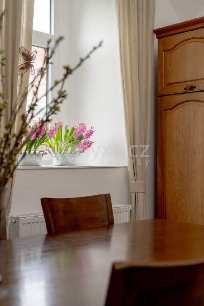 Dům s jižní orientací je původní kamennou stavbou po rekonstrukci s půdorysem 20 x 8 metrů. Střecha je z větší části nová. Rekonstruovaná část o velikosti 80 m? má praktickou dispozici 3 + 1 s přímým vstupem do zahrady. Obývací prostor je průchozí do ložnice s původní dřevěnou podlahou. Koupelna s toaletou je velmi prostorná, takže se do ní vešla vana i sprchový kout. Podlaha v koupelně je vytápěná. Z kuchyně s jídelním stolem projdete do další útulné ložnice.Na zrekonstruovanou část navazuje taktéž velmi citlivě zrekonstruovaná původní konírna. Dále stavba pokračuje vodárnou se sklepem na zeleninu a ovoce, na kterou navazuje prostorná stodola. Velkou předností domu je vlastní studna s čerpadlem a zároveň napojení na všechny potřebné sítě tj. vodovod, plyn a elektřina. Topení je řešeno etážovým plynovým kotlem.Zahrada je prakticky řešená, najdete zde vzrostlé stromy, prostor pro parkování, zpevněnou plochu na posezení i záhonky. Tato část Nechánic je velmi klidným místem s výbornou dostupností do Prahy autem nebo autobusem na stanici metra C Budějovická. V Nechánicích se nachází vícero moderních a prestižních stájí a tak si na své přijdou milovníci koní a přírody. Vesnice je obklopena lesy a loukami. Zveme vás na prohlídku, kde objevíte celý potenciál této nemovitosti. Rádi pomůžeme také s financováním hypotékou.Preferujeme bez domacích mazlíčku a nekuřáky. Možno přenechat část zařízení k užívání.