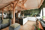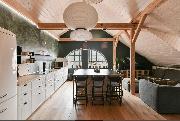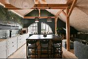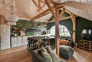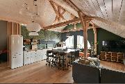 Dominantou bytu je velkorysý obytný prostor o velikosti 65 m and sup2;, který propojuje obývací část, kuchyňský kout a pracovní/klidovou zónu. Díky otevřenému prostoru, dřevěným trámům a podkrovnímu charakteru je prostor velmi vzdušný a působí jako moderní loft.