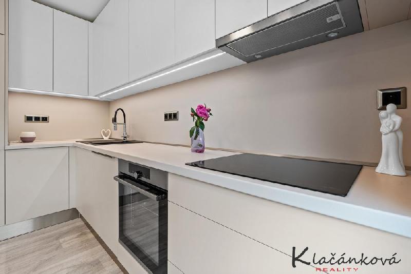 Nabízíme k prodeji novostavbu bytu 1kk, o rozloze 32m2, ve druhém patře domu. Jedná se o prosluněný byt s orientací J/Z strany. Elegantně sladěný .Kompletně vybaven kuchyňskou linkou, vyrobenou na míru od Machálek interiér /vestavěné spotřebiče - lednice, myčka, trouba, varná deska /. Zařízení bytu nové, kvalitní s dostatkem úložného prostoru, vyrobeno na míru. Kuchyń v kvalitním provedení v bílém a kašmírovém hlubokém matu. Dřez a baterie Franke. Spotřebiče Gorenje. V bytě podlahové vytápění - vodní./ poháněno tepelným čerpadlem - voda/vzduch/. K bytu náleží terasa o rozloze 9,6m2, sklep, a parkovací stání možno dokoupit. /390 tis. Kč/ Novostavba kolaudována v listopadu r. 2023. Bydlení v klidné, velmi žádané lokalitě Pod Hradem. Jedná se o bezbarierové bydlení. Nyní v bytě slušný, solventní nájemník. Možno koupit i s ním.
