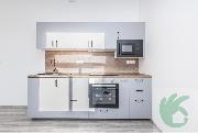 Hlavní obytný prostor je světlý a velmi příjemný. Najdeme zde kuchyňskou linku s vestavnými spotřebiči troubou, varnou deskou, digestoří i mikrovlnnou troubou takže byt je připraven k okamžitému bydlení bez dalších investic. Velkou výhodou je také rekuperace v celém bytě, která zajišťuje čerstvý vzduch a zvyšuje komfort bydlení.