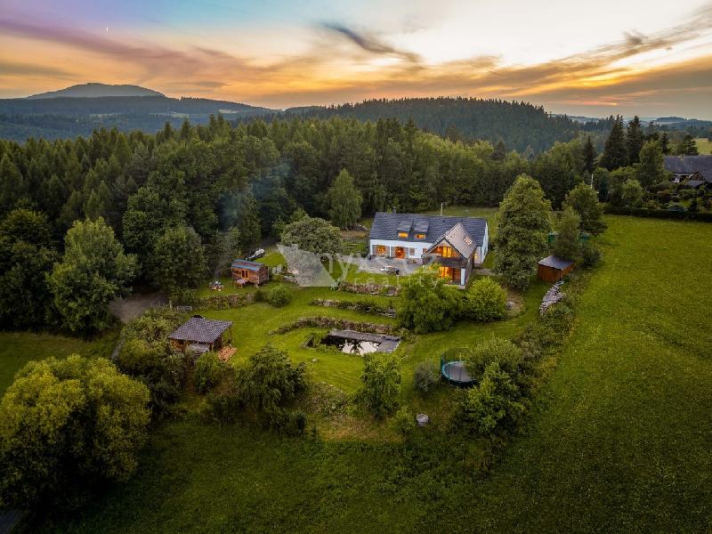 AMAZING ŠUMAVA„Objevte místo, které možná hledáte celý život“.Tohle není jen dům. Tohle je pocit.Pocit, že jste konečně doma — uprostřed přírody, obklopeni tichem a krásou, která bere dech.Majestátní výhled, který se mění s každým paprskem slunce.Les, který šumí jako tichá symfonie.Vzduch, který chutná po svobodě.Tohle je Šumava, jakou jste ještě nezažili.UNIKÁTNÍ VÝHLED, KTERÝ SE VRYJE POD KŮŽIZ balkonu, z terasy i z vířivky — pořád ten samý, dechberoucí výhled na šumavské panorama. Žádné dráty, žádný ruch. Jen vy, ticho a horizont, který vás každé ráno přivítá jinou náladou.ABSOLUTNÍ SOUKROMÍ A KLIDSem se dostanete pohodlně po udržované silnici. A pak? Ticho. Jen ptáci, vítr a vůně lesa. V okolí skoro jediný dům, minimální provoz, žádné kompromisy.PROSTOR, PROSTOR, PROSTORDům i zahrada jsou jako stvořené pro ty, kdo chtějí žít naplno. Pro rodinu, pro přátele, pro hosty. Všichni tu najdou svoje místo. A pokud přemýšlíte o podnikání, tady vás prostor bude inspirovat.NA DETAILECH SE NEŠETŘILOKaždý prvek byl vybrán s péčí a důrazem na kvalitu — čedičová dlažba, šumavská tradiční pec, kuchyňská linka na míru, dřevo, kámen, kov. Všechno spolu ladí v harmonii, která se neokouká ani po letech.ZAHRADA, KTERÁ ŽIJEZahrada o rozloze přes 3.000 m? je promyšleně upravená do teras, které navazují na architekturu domu. Biotopové jezírko, vzrostlé stromy, plodící keře, ořech, švestka, borůvky, ostružiny – vše pečlivě založeno, aby bylo krásné i funkční.DŮM S TECHNICKOU INSPEKCÍDům prošel nezávislou technickou inspekcí firmy Nemoinspekt, takže přesně víte, co kupujete. Žádné skryté vady, žádné dohady. Zkrátka … Tady, mezi nebem a lesem, na vás čeká domov, který si vás získá hned po prvním nadechnutí.Napište mi ještě dnes a domluvme si prohlídku.Protože takových míst už na Šumavě mnoho není.Těším se na vás.Jan MizlerT: +420 602 129 117POKUD VÁS ZAJÍMAJÍ POUZE FAKTADům má dispozici 8+kk, podlahovou plochu 387 m2, pozemek 3.314 m2 a 8 parkovacích míst.Dispozice domu: V přízemí se nachází hlavní obytná místnost – světnice, doplněná o jednu ložnici a hygienické zázemí. Dále jsou zde technické místnosti, garáž a sauna. V patře je situována společenský prostor, tělocvična, 5 ložnic a 2 koupelny s toaletou.Dům má energetickou třídu C.Náklady: Elektřina 12.500 Kč / čtvrtletně.Vybavení a technologie: Cihly Porotherm, ekopanely, fasády a terasy Thermowood, střešní tašky Tondach Contiton 12, dřevěná eurookna Bauer (dvojskla), vytápění: kachlová kamna + kombinovaný kotel AM Elektro typ 29, bojler Dražice 300l, solární panely pro ohřev vody, podlah: dole keramická dlažba, čedičová dlažba Eutit, v patře smrková prkna, kuchyňská linka na míru (masiv), myčka Miele, malá lednice (velká lednice s mrazákem v technické místnosti), požární čidla v podkroví a v dílně, zabezpečovací systém Jablotron, parkovací stání pro cca 8 aut.Na zahradě: Biotopové jezírko, dílna s možností úpravy na tinyhouse + 2 dřevěné přístřešky na auto, dřevo a techniku.