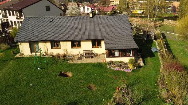 Nabízíme k prodeji velkorysý rodinný dům – bungalov o celkové užitné ploše 195 m?.Prostorný a světlý interiér 5+kk, poskytuje maximální komfort i pro početnější rodinu.Dispoziční řešení:Po vstupu do zádveří se nachází koupelna se sprchovým koutem a toaletou, šatna, dále z chodby technická místnost a vstup do srdce domu – prostorného obývacího pokoje s kuchyňským koutem.Dvoje francouzské dveře zajišťují dostatek denního světla a přímý vstup na terasu / zimní zahradu 10m2, čímž přirozeně propojují interiér s exteriérem.Z chodby pokračuje vstup do čtyř pokojů a druhé prostorné koupelny s vanou, další sprchou a toaletou. Ložnice má vlastní šatnu a další francouzské dveře se vstupem na zahradu. Topení domu řeší krbová kamna s teplovodním výměníkem napojená na rozvody podlahového vytápění, která zajišťují příjemné a rovnoměrné teplo v celém interiéru. Systém je doplněn elektrokotlem jako podpůrným zdrojem, což umožňuje pohodlný provoz po celý rok. Výsledkem jsou nízké náklady na vytápění.Budova se pyšní štítkem energetické náročnosti – třída B.Dům je plně vybaven, nachází se na rozlehlém pozemku o výměře 5 893 m?, který poskytuje dostatek prostoru pro relaxaci i venkovní aktivity.Součástí nabídky je také stavba o výměře 55 m?, vhodná jako garáž nebo menší dílna.Na pozemku se nachází nově vybudovaný skleník, rozvod užitkové vody po celé zahradě a zeleninová zahrada. Dále je zde vysazeno množství okrasných keřů, stromů a květin, které dotvářejí příjemný charakter zahrady.V zadní části pozemku, směrem do volné zeleně, se nachází nově vybudovaná soustava sedmi tůní a prostorný ovocný sad. Tomuto celku předchází hospodářská část určená pro domácí chov. Rožmitál pod Třemšínem je ideálním výchozím bodem pro turistiku a cykloturistiku do pohoří Brd, současně nabízí všechno potřebné pro každodenní život – školu, školku, lékaře, obchody i sportoviště.Příbram je vzdálená 10km, Praha 75km - po D4 hodinu autem. Plzeň je vzdálená 47km. V případě zájmu Vám zdarma zprostředkujeme sjednání hypotéky.