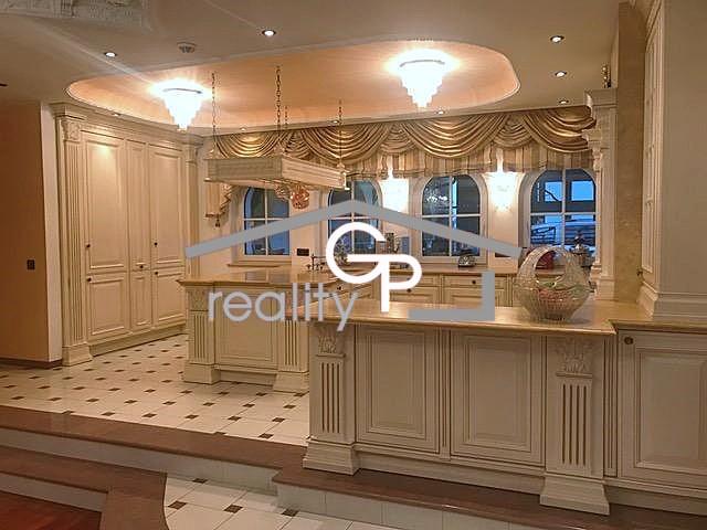 Přízemí dominuje velkorysá vstupní hala s ručně vyřezávaným schodištěm, která propojuje obývací pokoj s krbem, jídelnu a luxusní kuchyni se spotřebiči Miele a Gaggenau. Dále se zde nachází ložnice s vlastní koupelnou a pracovna. Součástí rezidence je wellness zóna s vnitřním bazénem, vířivkou a přímým vstupem na terasu.