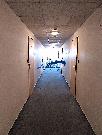 Ze společné chodby vstoupíme do pokoje s kuchyňským koutem, kde je lednička,