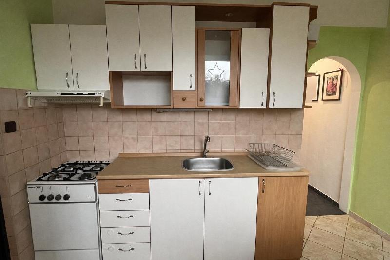 Vzhledem ke své velikosti je byt ideální pro pracující pár nebo pro rodinu s dítětem.Orientace bytu je do klidné zóny parku a cyklostezky za domem směrem ke Skalce.Byt je částečně vybaven: kuchyňská linka se spotřebiči- plynový sporák (bude vyměněn za nový), digestoř, lednice s mrazákem. Dále jídelním stolem a dvěma židlemi, TV stěnou a šatními skříněmi v ložnici a obývacím pokoji.V koupelně se nachází rohová vana a umyvadlo s místem pro pračku. WC je samostatné.Vytápění bytu a ohřev vody je zajištěno z kotelny v domě. Měsíční náklady jsou: nájem 14.000 Kč, zálohy 4.485,-Kč/3 osoby.Kauce ve výši 28.000 Kč, provize 14.000 Kč.Byt je nekuřácký, zvířata nejsou povolena.Lokalita je v docházkové vzdálenosti do centra města, nedaleko MHD. Je zde veškerá občanská vybavenost. Parkoviště je přímo u domu. V případě zájmu o prohlídku mě kontaktujte.