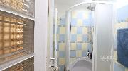 Součástí koupelny je sprchový kout a pračka. Toaleta je samostatná. Nad koupelnou je navíc praktické patro vhodné pro uložení sezónních věcí nebo dalších úložných boxů.