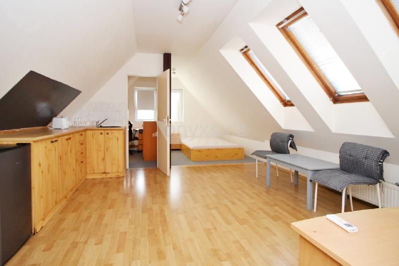 Jedná se o podkrovní byt v rodinném domě s dispozicí 1+1, výměra 45 m2, 3.parto s možností užívání terasy. Vstup do bytu je po schodišti do předsíně, obývací pokoj s kuchyňským koutem vybaveným sporákem s troubou, klimatizační jednotka, jeden samostatný pokoj, koupelna s vanou, WC, pračka, šatna. Vhodné jako startovací byt. Jedná se o velmi klidnou lokalitu ve vilové čtvrti se skvělým spojením do centra Prahy jednak vlakem, ale také autobusy na Černý Most. K nastěhování 1.11.2025