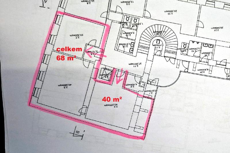 (V případě zájmu o dvě kanceláře 68 m² nebo celek 108 m² – budou podmínky upraveny poměrově.)