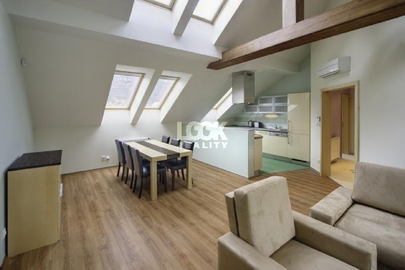 Pronájem, luxusní mezonet 2+kk, Holečkova, Praha 5 - Smíchov, 55 m2, terasa, recepce, u metra Anděl