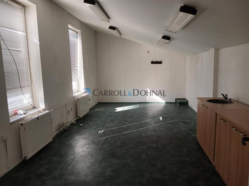 Prostor má toaletu. Vhodné jako kancelář, ateliér, zkušebna a dílna.