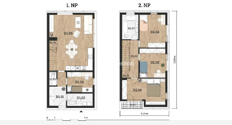 Dům se nachází v klidné zástavbě rodinných domů, která navazuje na starší a zavedenou obytnou čtvrť. Je součástí moderního developerského projektu, který klade důraz na vysoký standard, kvalitu výstavby a použitých materiálů. Dokončení projektu je plánované v druhé polovině roku 2026.V přízemí domu je prostorný obývací pokoj s kuchyňským koutem, jenž díky velkým francouzským oknům nabízí dostatek přirozeného světla a přímý vstup na zahradu s terasou orientovanou na jihovýchod. Dále je zde pokoj vhodný jako ložnice, pracovna nebo pokoj pro hosty, samostatné WC a praktická technická místnost vybavená tepelným čerpadlem (vzduch–voda), výlevkou a přípravou pro pračku i sušičku. V patře se nacházejí tři prostorné ložnice a komfortní koupelna s vanou a toaletou.Dům je vytápěn úsporným tepelným čerpadlem napojeným na podlahové vytápění, je vybaven rekuperací s řízeným větráním a kvalitními šestikomorovými okny s trojskly. Energetická třída B zajišťuje nízké provozní náklady. Nemovitost je připravena na instalaci moderních úsporných technologií, jako jsou fotovoltaické panely, závlahový systém nebo multimediální rozvody. Stavba je provedena s důrazem na detail, funkčnost a dlouhou životnost s použitím kvalitních materiálů od renomovaných dodavatelů.Na pozemku se nachází zastřešený úložný prostor – venkovní sklad navazující na výklenek pro umístění odpadových nádob. Vstupní část pozemku je připravena pro parkování, případně rozšíření o přístřešek pro auta.Lokalita nabízí výjimečné soukromí díky uzavřené ulici bez průjezdu. Zároveň je velmi dobře dostupná – centrum města je vzdáleno pouhých 7 minut chůze, nájezd na dálnici D8 je do 6 minut autem a cesta do severní části Prahy trvá přibližně 20 minut. Vlakové nádraží je vzdálené asi 1 km, navíc v blízkosti plánovaná rychlodráha přinese přímé spojení s centrem Prahy během 19 minut (kolaudace terminálu je plánována na rok 2030). Autobusová zastávka se nachází přímo u vjezdu do ulice, základní škola je v docházkové vzdálenosti 100 metrů. Lokalita je doplněna o veřejná parkovací stání včetně míst pro návštěvy.Bezpečné financování zajišťuje ochranu vaší investice – Financování je rozděleno do několika fází, které reflektují reálný průběh výstavby a zároveň umožňují přizpůsobení podmínkám konkrétní banky poskytující klientovi hypoteční úvěr. Tento model přináší vysokou míru jistoty, kontroly a transparentnosti celého procesu.